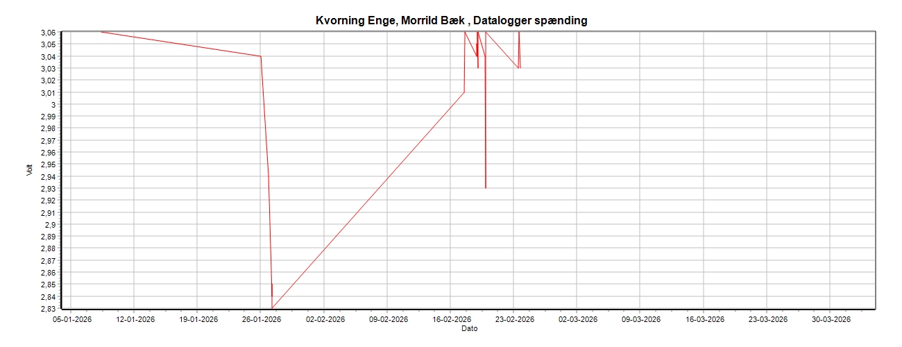 Kvorning Enge, Datalogger spænding, 90 dage.