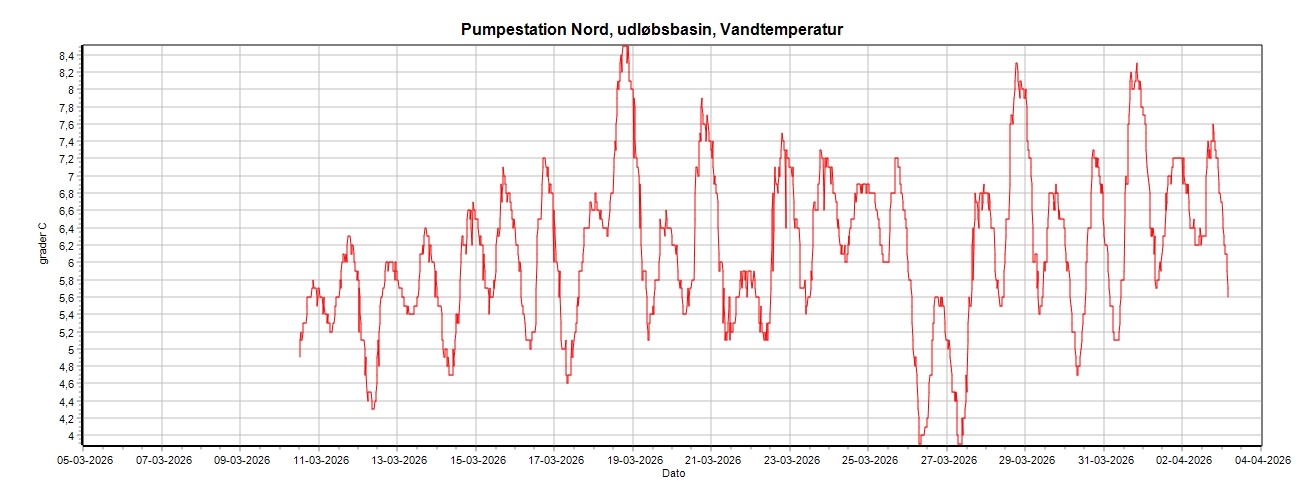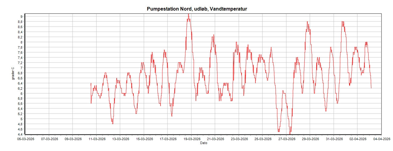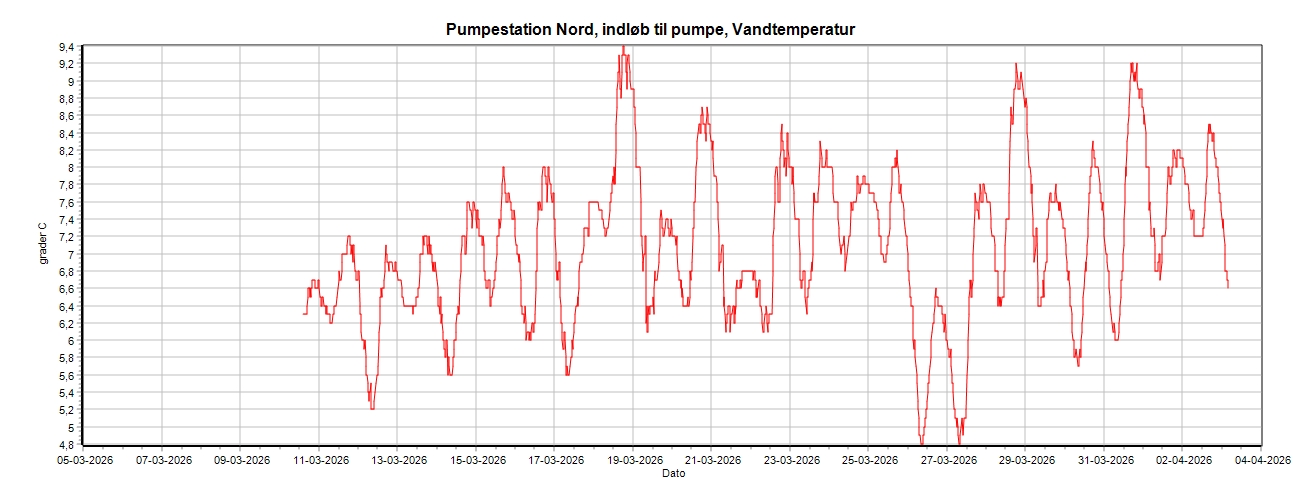 Pumpestation Nord, Vandtemperatur, 30 dage.