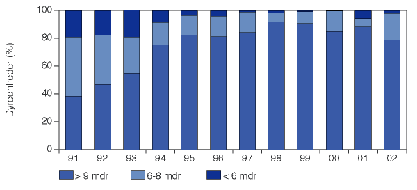 2002. I 2002 stod 79 % af dyreenhederne på